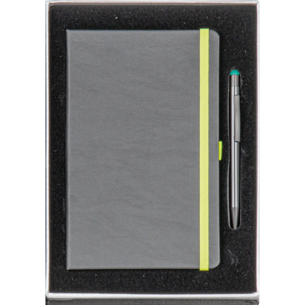 * 13 x 21 cm Termo Deri Defter (Ulus) * Tükenmez Metal Kalem (0555-335) * Kutu: Cilt Bezi